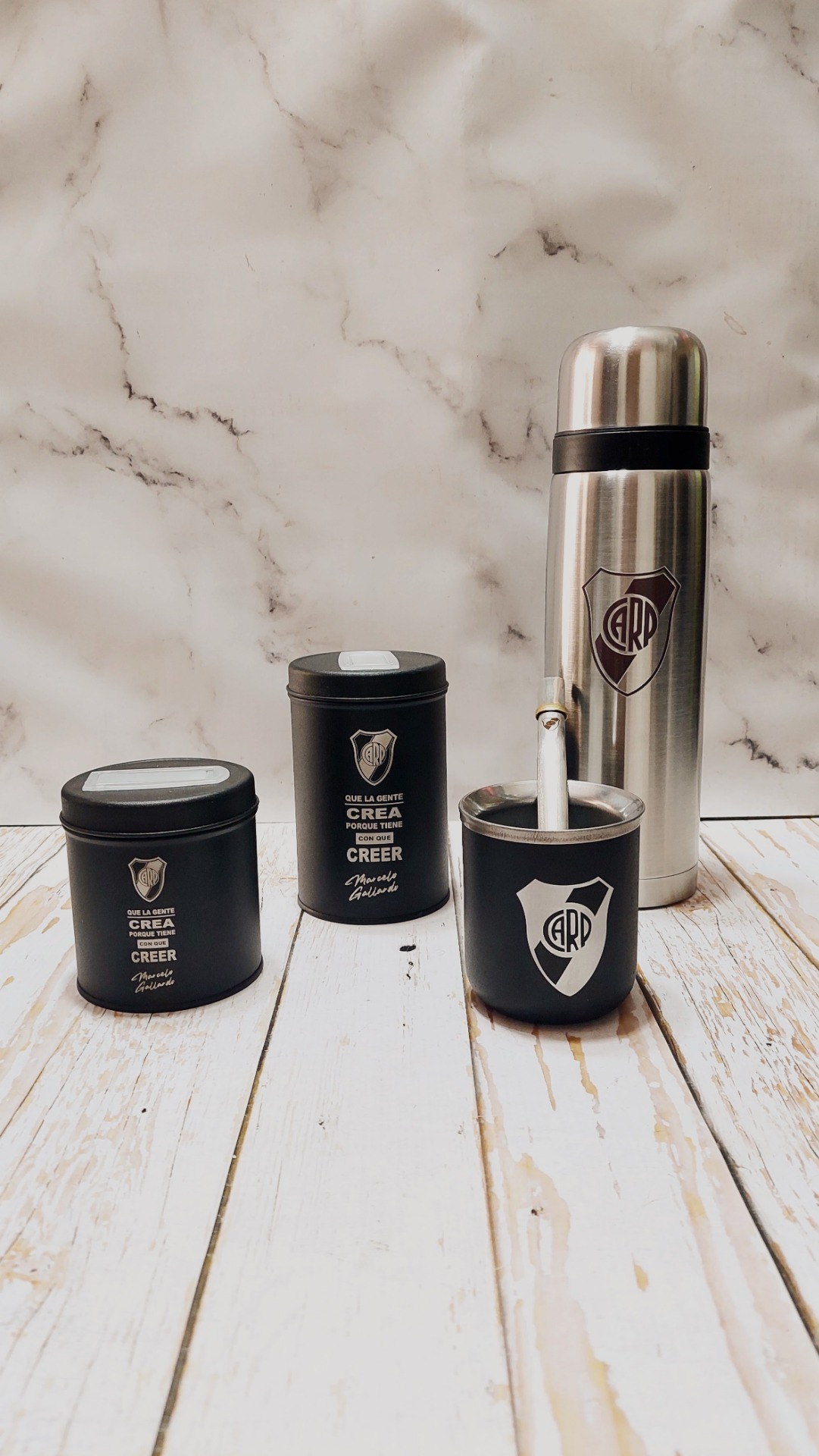 Set latas + mate acero - River