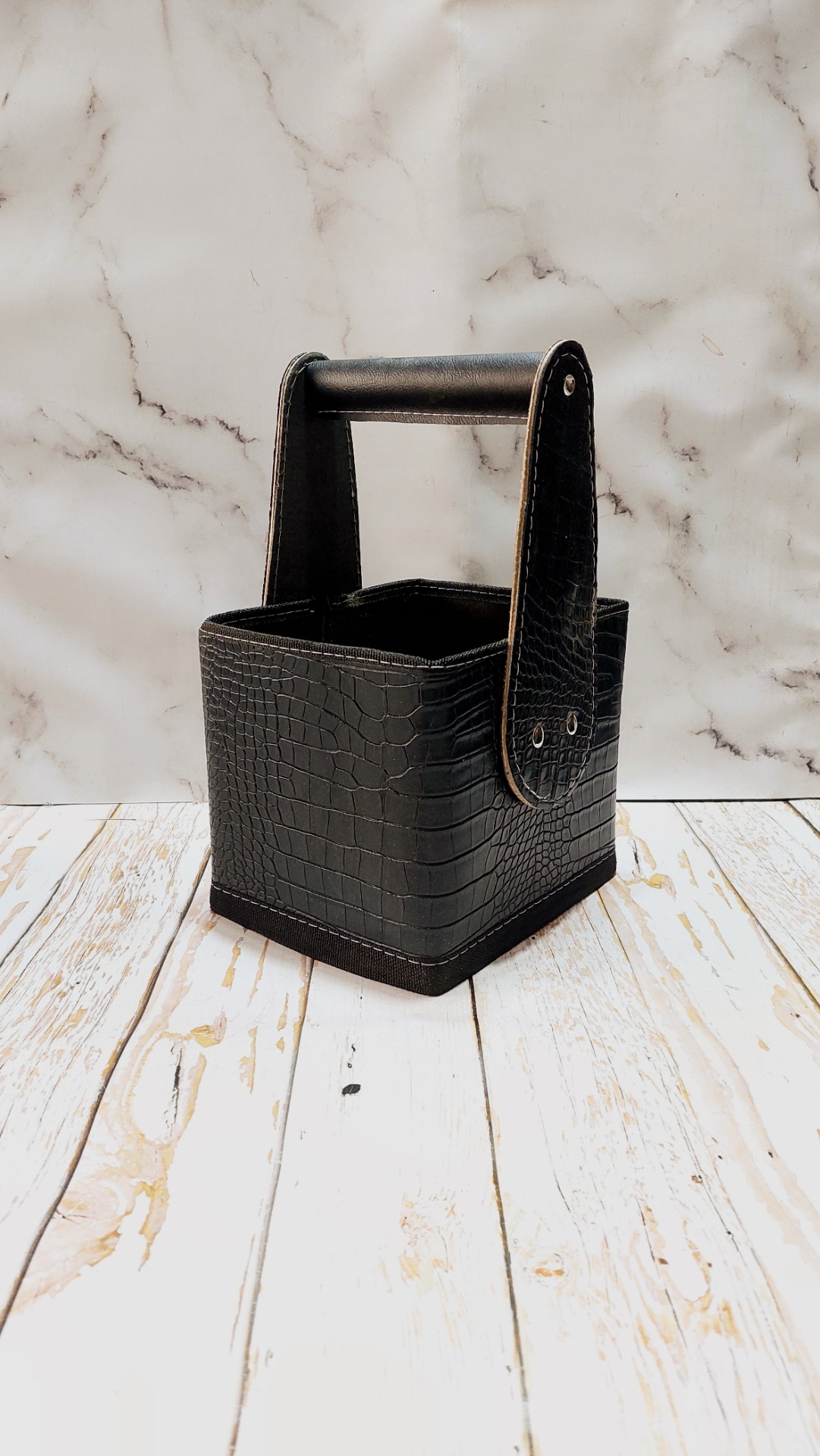 Canasta rígida croco, color negro.