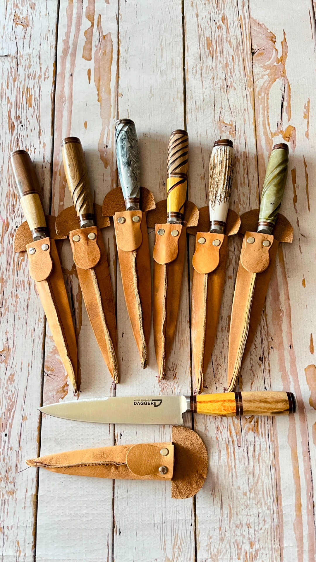 - Cabos regionales tales como: ciervo imitacion combinado con madera, madera en distintas combinaciones, acrilicos.